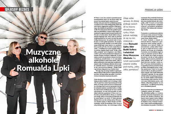 Zdaję sobie sprawę, że dzisiaj próbuję swoich sił na mocno obsadzonym rynku. Mam jednak nadzieję, że się na nim zmieszczę – mówi Romuald Lipko, lider Budki Suflera i właściciel firmy Muzyczne Alkohole. Na rynek wprowadził właśnie wódkę pod marką „Jolka, Jolka, pamiętasz”.